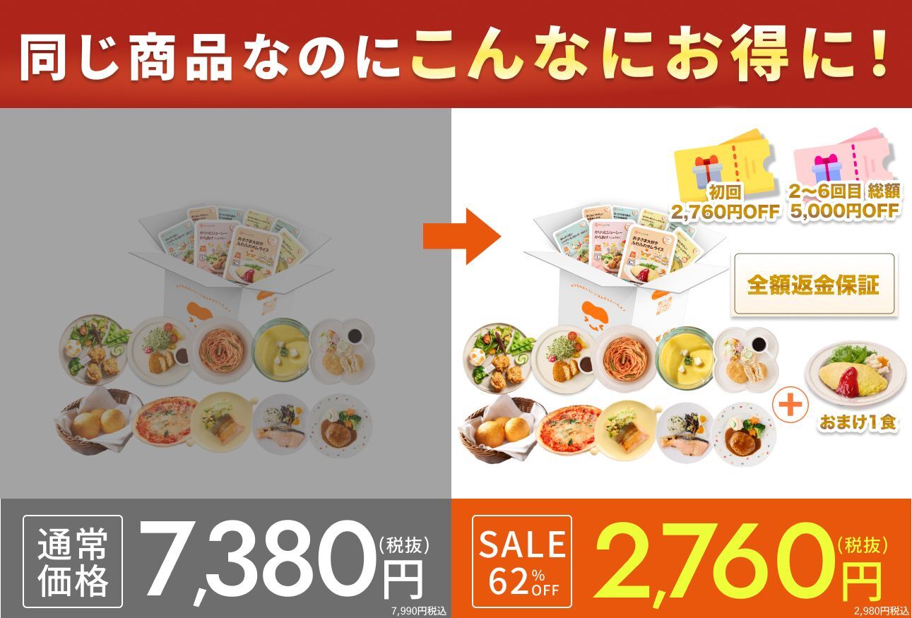 ※通常価格は定期8食(単価580円税別・関西圏送料込)に基づき算出